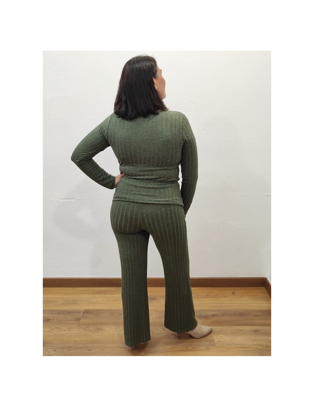 Conjunto de Punto "Olive Comfort" – Dos Piezas de Camiseta Manga Larga y Pantalón Fluido