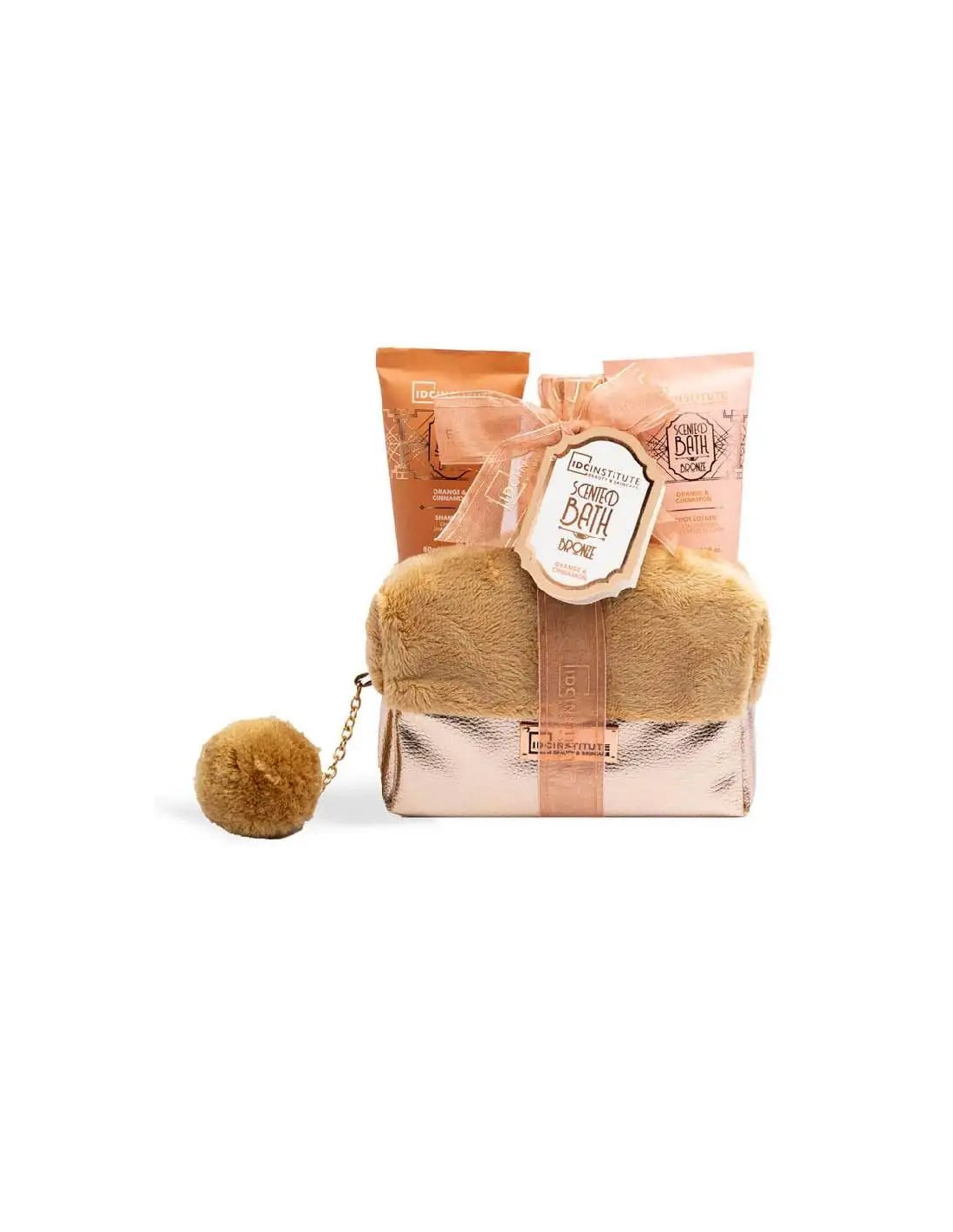 El Scented Bath Bronze Bag de IDC Institute es un regalo encantador y elegante, perfecto para sorprender durante las fiestas navideñas. Este set exclusivo combina productos esenciales de cuidado personal con un práctico neceser decorado con pompones y acabado de pelo sintético, ideal tanto para guardar cosméticos como para llevar en cualquier ocasión.